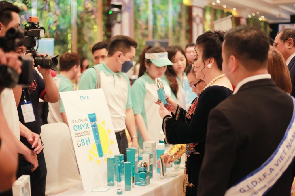 Ban tổ chức cùng lãnh đạo tham quan gian hàng của Công ty ONYX COSMETICS