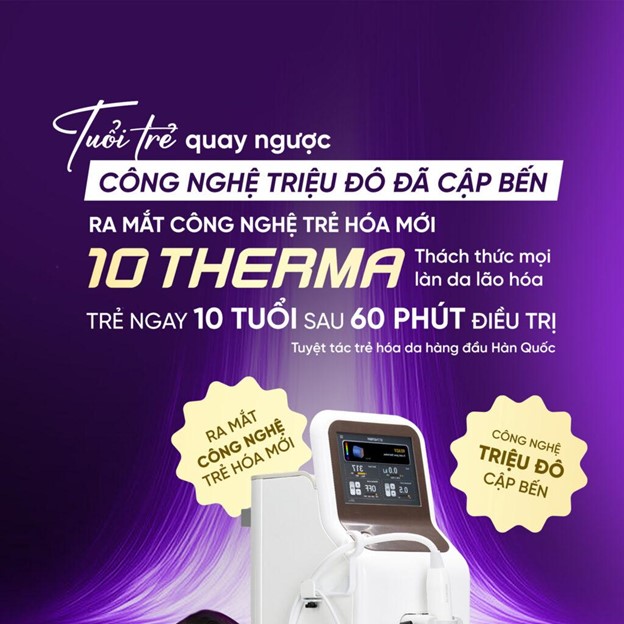 Điểm nổi bật của 10THERMA chính là khả năng phá vỡ các cấu trúc lão hóa, kích hoạt quá trình tự tái sinh của da một cách tự nhiên. Công nghệ này còn tích hợp hệ thống làm mát 7-Cool độc quyền, giảm đau tối đa, mang lại trải nghiệm thoải mái như Spa chuẩn VVIP. Đây không đơn thuần là một phương pháp trẻ hóa, mà là cú đột phá trong công nghệ, đem lại hiệu quả rõ rệt và duy trì lâu dài, giúp khách hàng tự tin tỏa sáng.