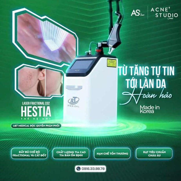 Một trong những sản phẩm tiêu biểu nổi bật của A&T MEDICAL đó chính là Laser CO₂ Hestia – thiết bị laser CO₂ thế hệ mới, ứng dụng rộng rãi trong các quy trình tái tạo, trẻ hóa và điều trị các vấn đề về da theo tiêu chuẩn y khoa. Công nghệ này không chỉ đáp ứng các yêu cầu khắt khe của y học mà còn hướng đến mục tiêu tối ưu hóa hiệu quả điều trị, giảm thiểu rủi ro và thời gian hồi phục cho khách hàng.