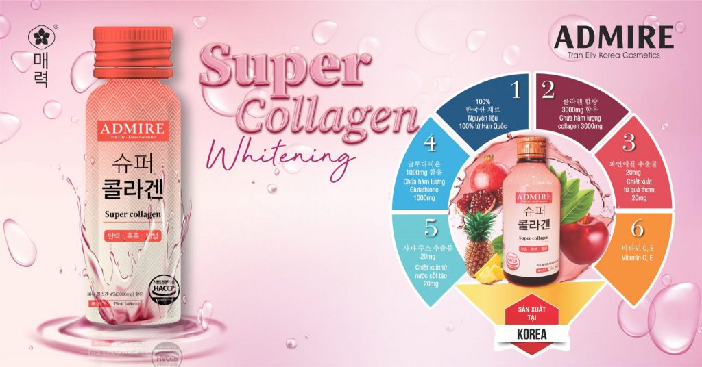 Chứa 100% Collagen từ cá, và kết hợp với các loại trái cây nhiệt đới, được kiểm nghiệm lâm sàng và nhập khẩu từ Hàn Quốc, sản xuất với công nghệ tiên tiến và tuyệt đối không sử dụng chất bảo quản và đảm bảo uy tin theo tiêu chuẩn của Bộ Y Tế. 94% phụ nữ đã uống Collagen Admire công nhận hương vị thơm ngon cực kì dễ uống, không quá ngọt và hương vị trái cây, khách hàng thay đổi làn da mịn màng, cơ thể khỏe mạnh, mềm mượt chỉ sau 28 ngày trải nghiệm.