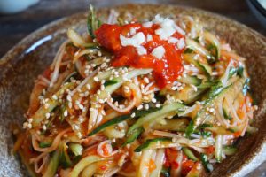 Món nộm đơn giản từ dưa chuột và nấm kim châm rất thích hợp để...