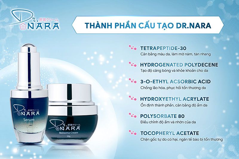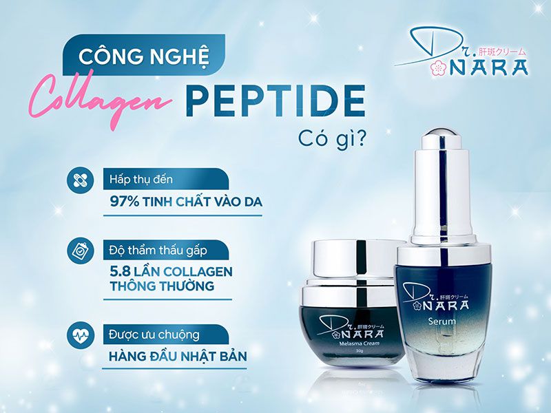 Dr. Nara là dòng sản phẩm trị nám sở hữu công nghệ Collagen Peptid là một thành phần quan trọng trong mỹ phẩm với khả năng làm săn chắc da, giúp da mềm mịn tươi sáng.