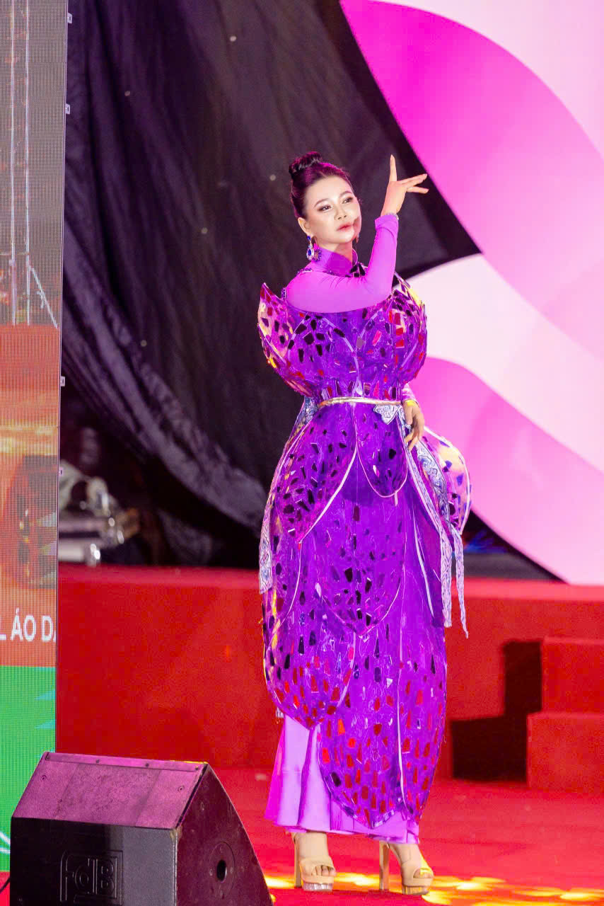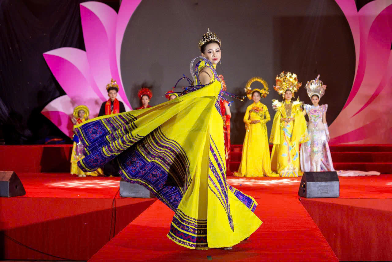 Hà Lê được NTK Khôi Nguyễn thiết kế riêng chiếc áo dài mang phong cách cô gái bản làng nơi núi rừng thôn dã hồn nhiên đặc trưng của 54 dân tộc anh em gần gũi gắng kết giao lưu trong lễ hội Festival áo dài du lịch Việt Nam 2025 lần đầu tổ chức tại tỉnh Hưng Yên.