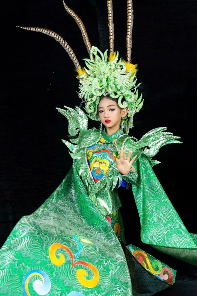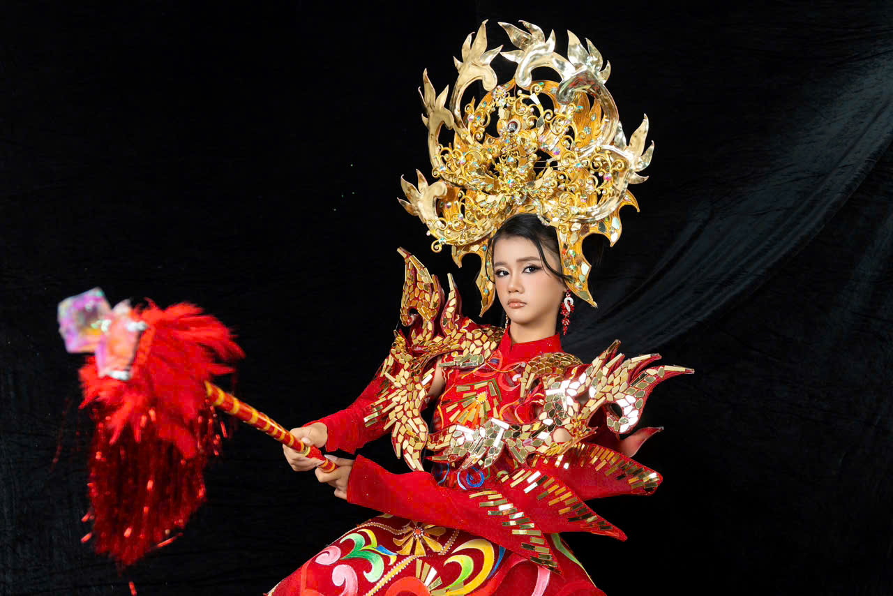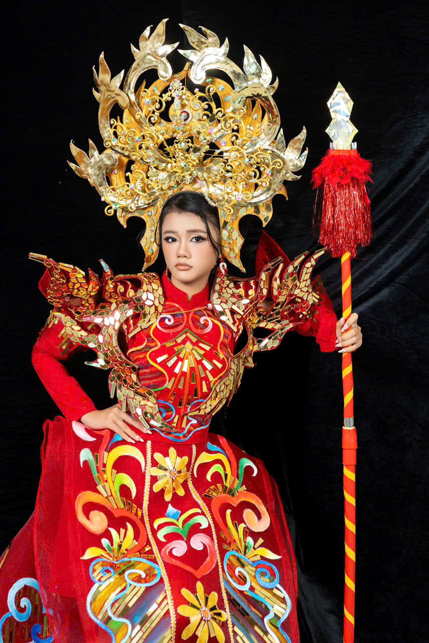 Cũng tại chương trình, NTK Khôi Nguyễn cũng đã đo ni đóng giày cho bé với phần trình diễn “Trang phục dân tộc” hóa thân thành nữ tướng dũng mãnh. Vị nữ tướng này mang vẻ đẹp chiến binh của bộ môn Cải lương tài tử đặc trưng nơi Miền Tây Nam Bộ.