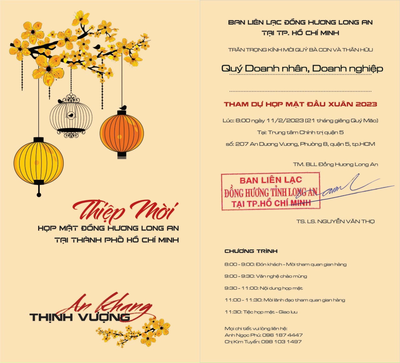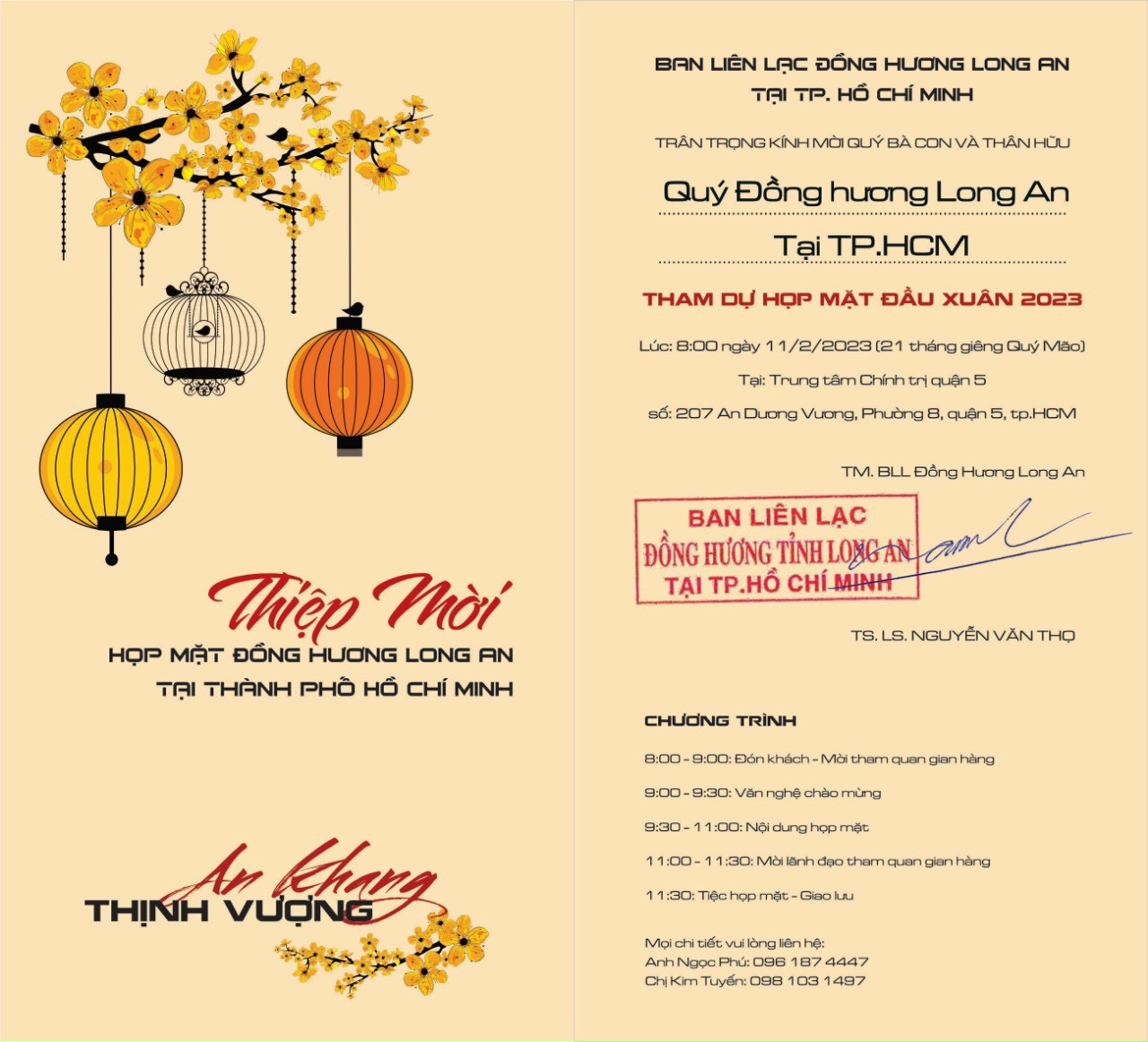 Chương trình sẽ được diễn ra vào lúc 08 giờ, Thứ bảy, ngày 11 tháng 02 năm 2023 (Nhằm ngày 21/01/2023 Âm lịch)