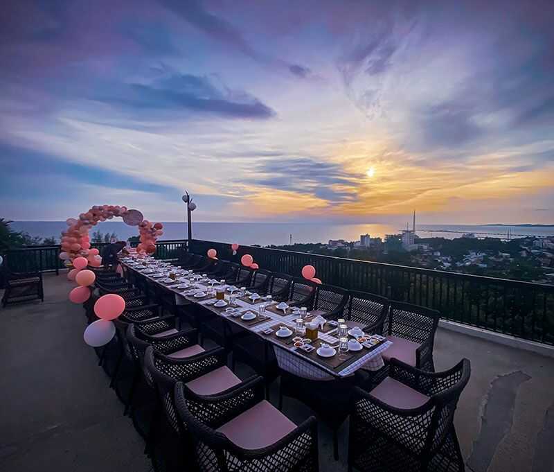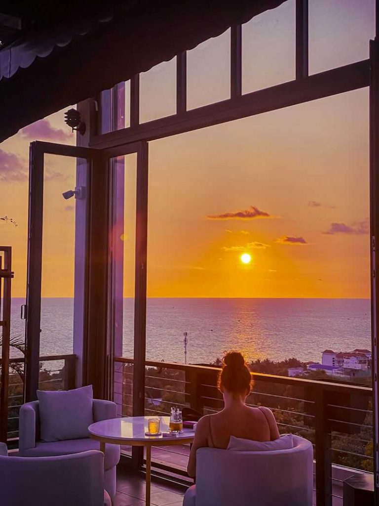 Phú Quốc đẹp hơn khi nhìn ngắm từ trên cao, đặc biệt trong những chiều hoàng hôn đỏ rực đường chân trời, ám sắc xuống mặt biển. Được đặt trên tầng cao nhất, Sơn Trà Hill’s 1973 Bistro & Stay là một trong những nhà hàng cafe có view đẹp nhất đảo Ngọc.
