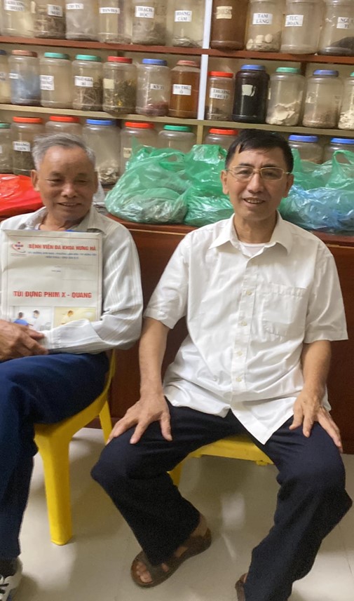 Danh y Nguyễn Trần Chuyển (bên phải) và bệnh nhân Lê Văn Lâm(bên trái)