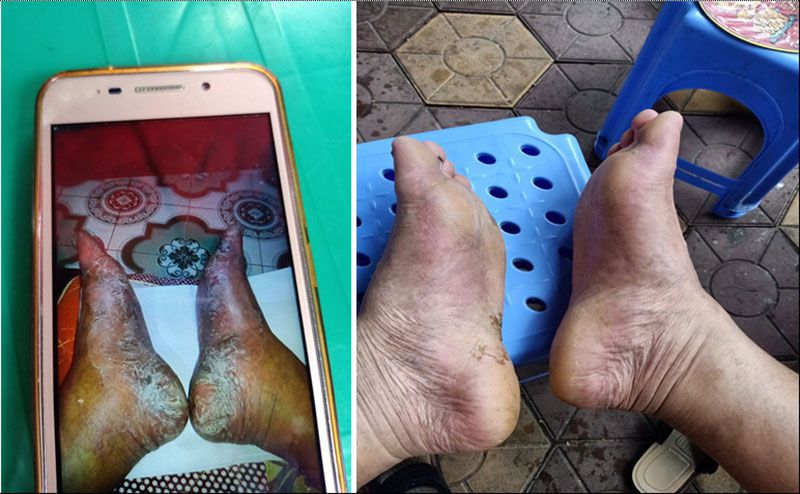 • Bệnh tổ đỉa: Mụn nhỏ ở lòng bàn chân, bàn tay, kẽ ngón, ngứa ngáy, gãi bóp nước trong dính, bội nhiễm có mủ, bệnh dai dẳng…