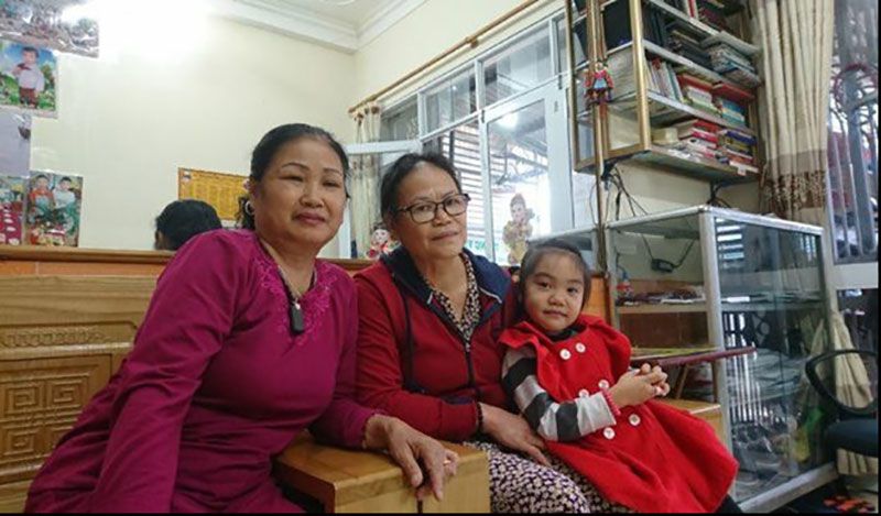 Bà Hoàng Thị Nhung (ở giữa) luôn coi lương y Nông Kim Hương (bên trái) là ân nhân của gia đình mình
