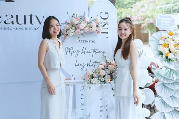 CEO Đinh Thị Ngân ( bên trái) tại buổi khai trương Ri Beauty