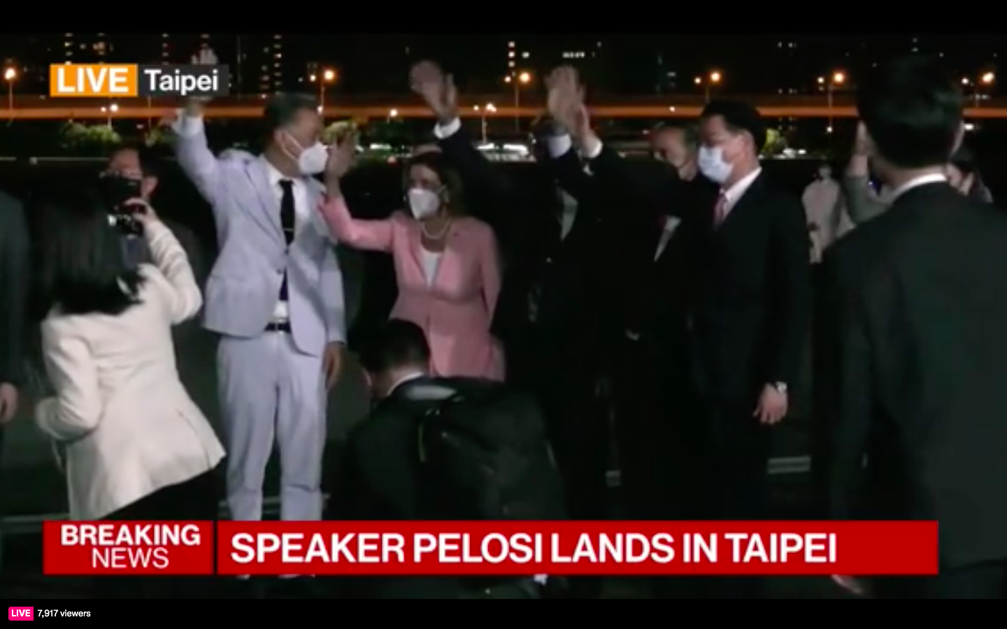 Ngay khi đến Đài Loan, Chủ tịch Hạ viện Mỹ Nancy Pelosi đã đăng tuyên bố chính thức về chuyến thăm của bà cùng đoàn nghị sĩ, chuyến thăm chính thức Đài Loan lần đầu tiên của một vị chủ tịch Hạ viện Mỹ trong 25 năm.