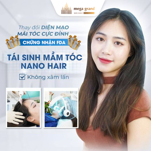 Nano hair tại Thẩm mỹ viện Mega Grand sử dụng máy công nghệ cao kết hợp tinh chất Bio Keratin giúp kích thích nang tóc phát triển từ sâu bên trong. Các tinh thể nguyên bào gốc sẽ thay thế các tế bào tóc đã bị hư tổn và đứt gãy, giúp tái sinh mầm tóc nhanh gấp 2.000 lần các phương pháp thông thường theo quy trình thực hiện nghiêm ngặt