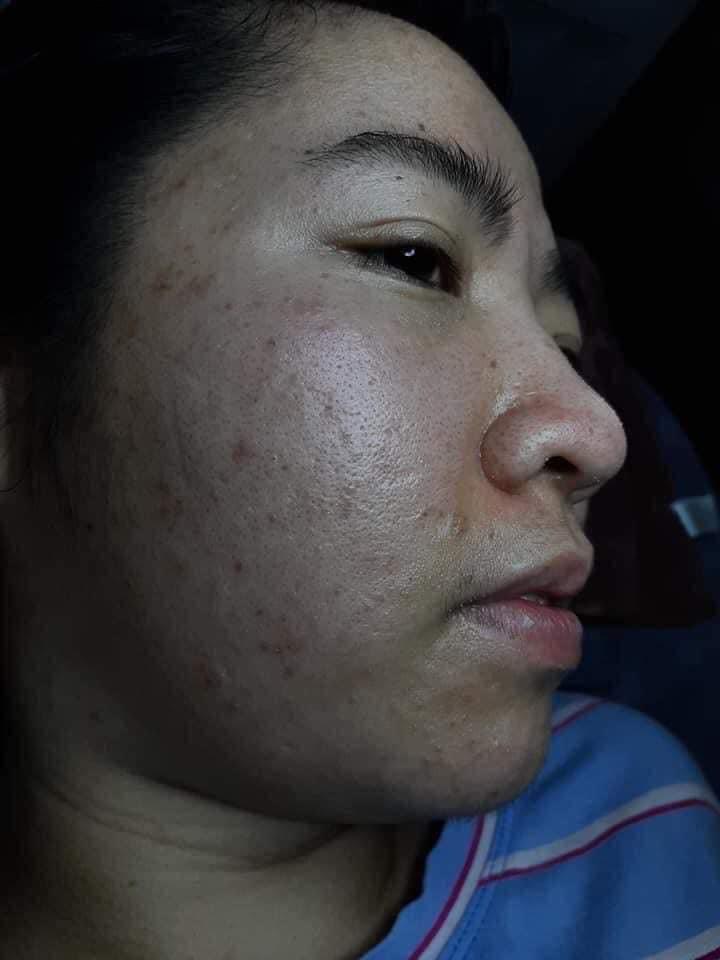 Nhiều người khuyên bảo rằng nó chỉ xảy ra ở giai đoạn dậy thì, lớn sẽ tự ắt hết nên cô cũng nhẹ lòng hơn và chủ quan không chăm sóc làn da mụn nữa. Nhưng khi tốt nghiệp xong cấp 3 thì mụn vẫn chẳng hết đi mà còn thêm nhiều hơn nữa. Lúc này khi đi làm cô đã rất tự ti về khuôn mặt chi chít mụn của mình, để rồi tìm hiểu và chữa trị rất nhiều nơi nhưng tình trạng không những không giảm mà còn trầm trọng hơn, những vết mụn sau đó thâm xì và có nhiều sẹo rỗ.