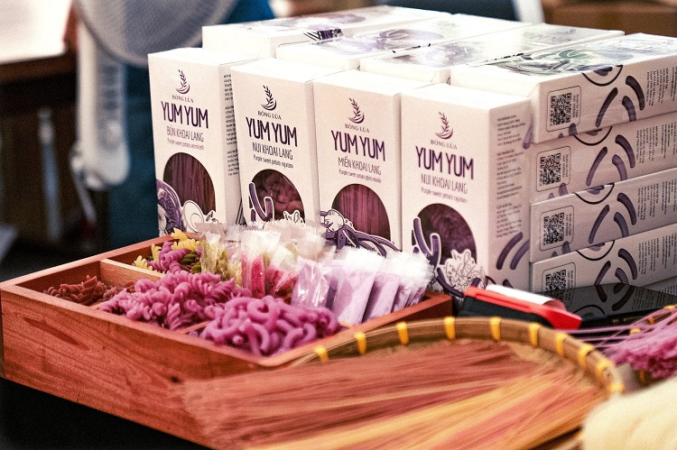 Với tiêu chí ” Chợ truyền thống”, gian hàng YUM YUM đã thu hút đông đảo khách tham quan và chụp hình check in nhờ vào việc trưng bày sáng tạo, các sản phẩm món sợi truyền thống ở dạng khô của Việt Nam được chọn lọc kỹ càng, bao gồm cả dòng sản phẩm lành mạnh như Khoai Lang Tím, Gạo Lứt hay Rau Củ, được biết đến với nhiều lợi ích sức khỏe cũng như tính hiệu quả trong việc giảm cân, giữ dáng. Thiết kế gian hàng nổi bật và thông tin sản phẩm trình bày một cách khoa học, dễ hiểu đã làm tăng sự quan tâm của khách tham quan.